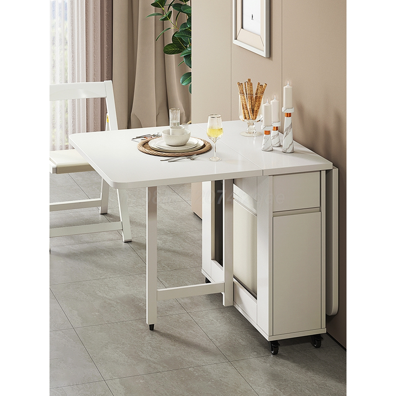 Foldable Dining Table For Small Household Folding Table To Save Space Movable 1.3m Wood Table With 0/2/4 Chair Combination Set