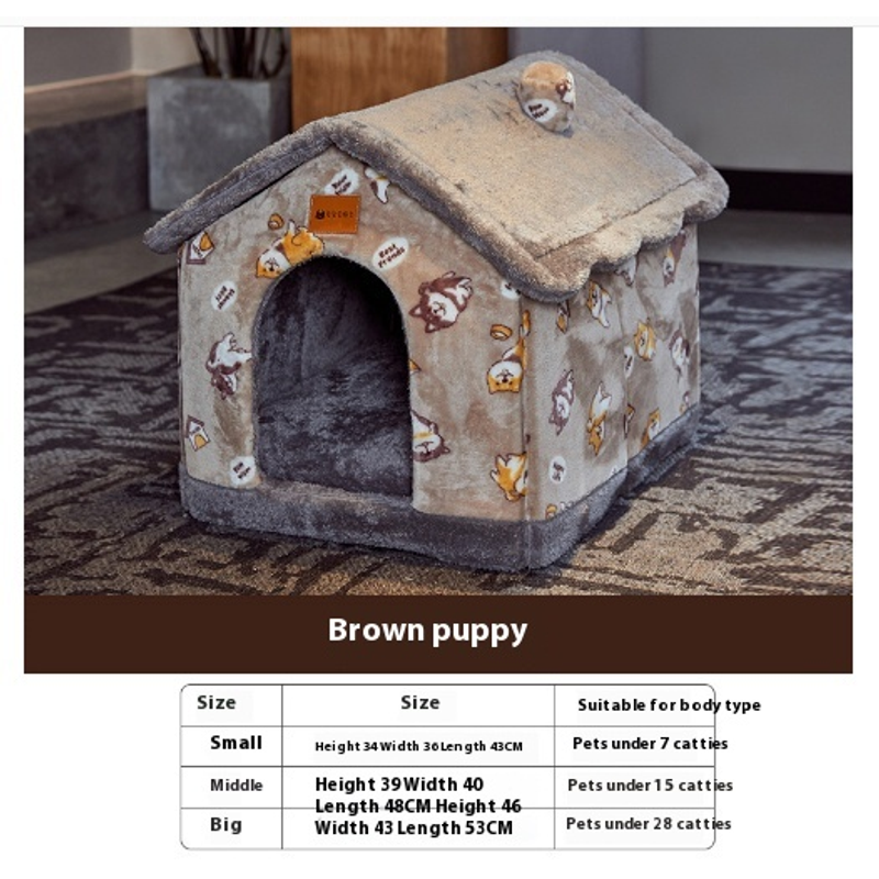 Foldable Dog House Pet Cat Bed Winter Dog Villa Sleep Kennel Removable Nest Warm Enclosed Cave Sofa Pets Supplies Brown Snow House Large