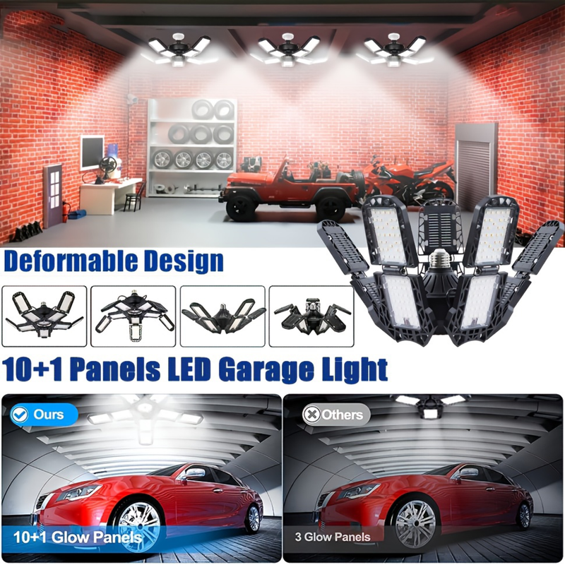 Foldable LED Garage Lights 7/10+1 Adjustable Panels Suitable for E26/E27 Bulb Base Super Bright Ceiling Lamp for Warehouse Shop