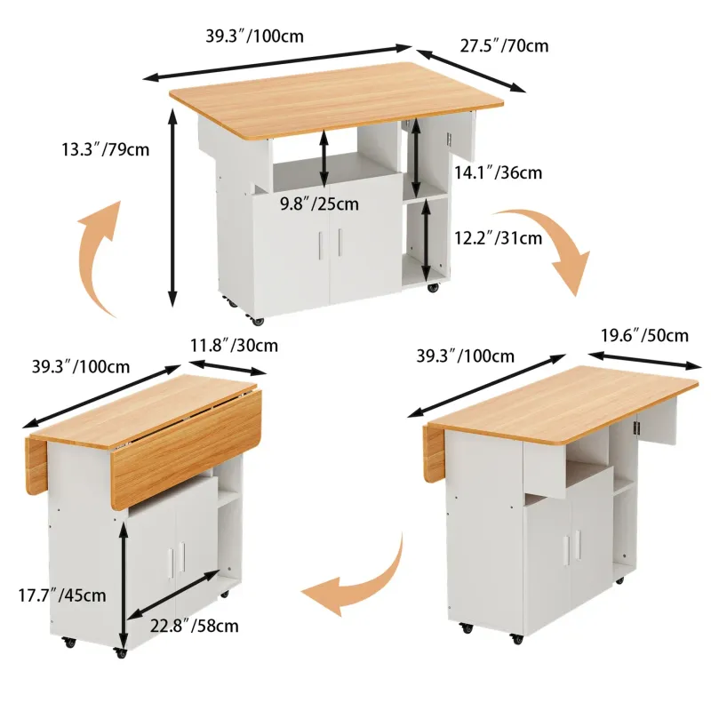 Open Shelving & Cabinet: Beyond its table function, this piece offers exceptional storage solutions with both open shelves and a cabinet with door. The open shelf is perfect for frequently used items like spices or tableware, while the cabinet keeps cutlery clean. Use it as a kitchen table with spice storage, a home office desk with file space, or a living room side table displaying ornament.Specifications: