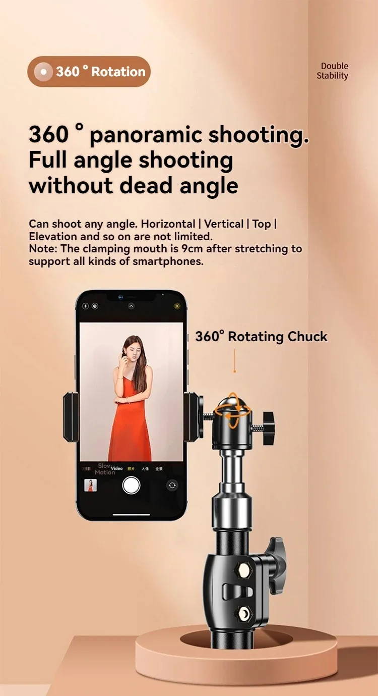 【Flexible Tripod for Cell Phone】Cell phone tripod features a sturdy and stable triangular base that provides superior stability for taking shake-free photos and videos. Flexible tripod pan head can be rotated 180°, phone holder is adjustable 360°. Attached 9.8-inch long gooseneck, you can bend it to your desired angle. Whether you are shooting horizontally, vertically, overhead, upward, or panoramic the phone tripod stand can handle it with ease.