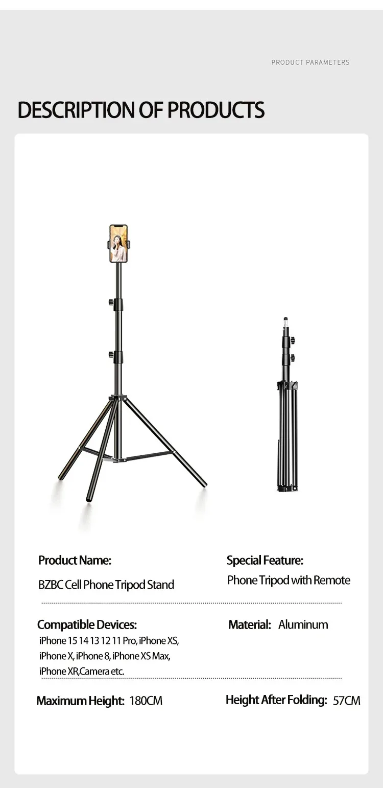 【Phone Tripod with Remote】Portable tripod for phone is equipped with a wireless remote, quick pairing and easy operation. Maximum working range up to 10 meters/33 feet and supports more than 20,000 photos. Whether you're taking a group selfie or recording a stabilized video, do it with the remote control. Wireless remote phone tripod is compatible with both iOS and Android systems.