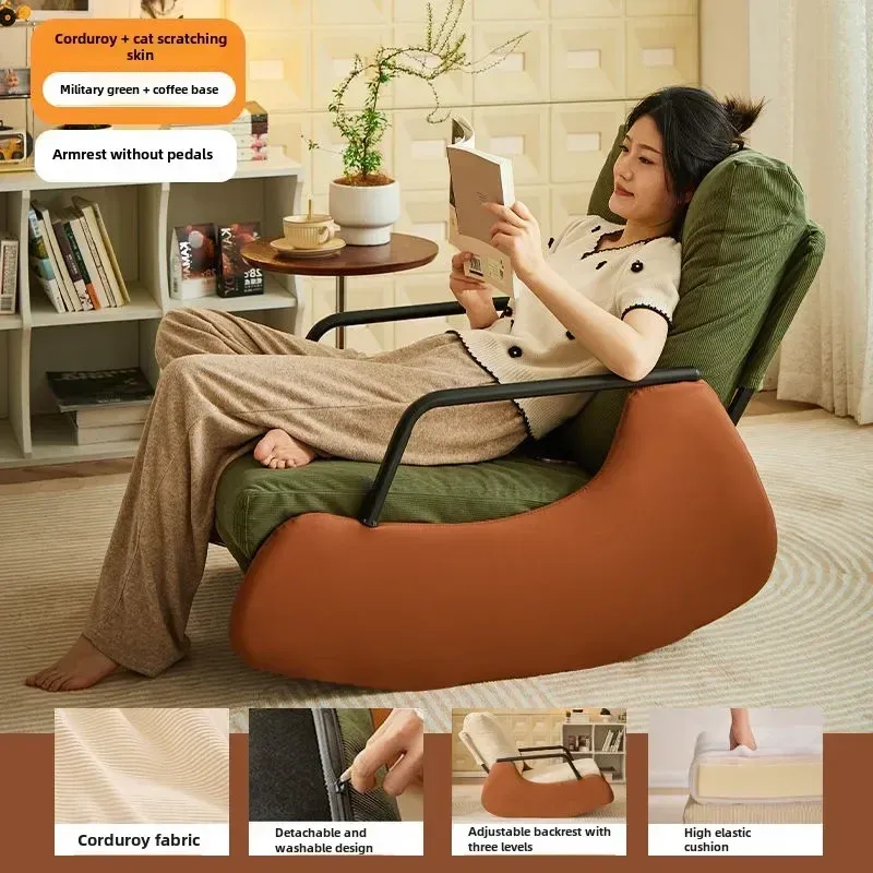 Foldable Rocking Chair Backrest Armrest Sofa Bed Balcony Home Leisure Chair Single Bedroom Living Room Leisure Lazy Sofa Bed