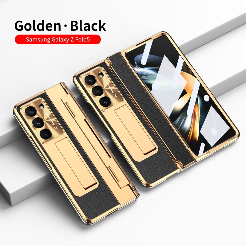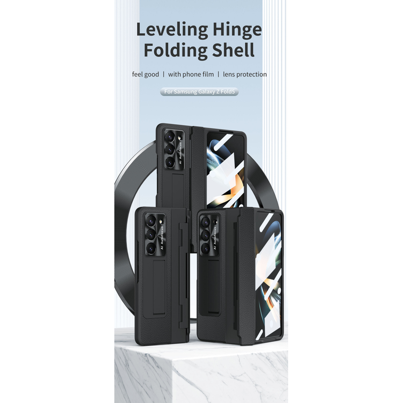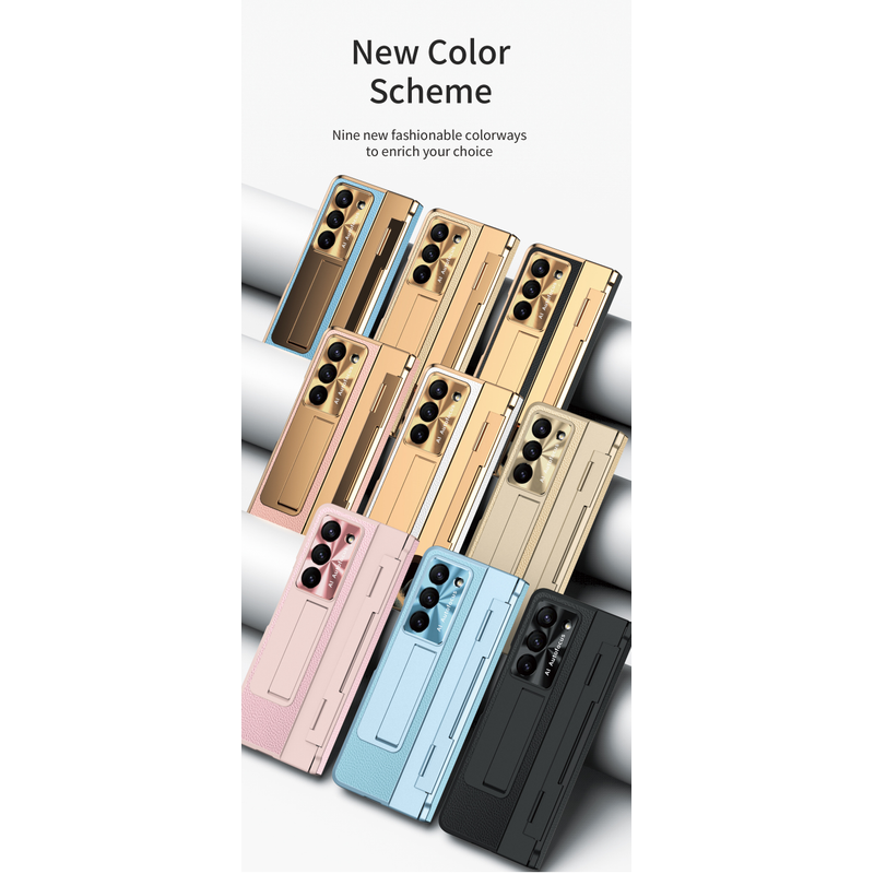 Foldable Screen Flat Hinge Plain Leather All-inclusive Drop-resistant Protective Shell Blue Shield Samsung FOLD4