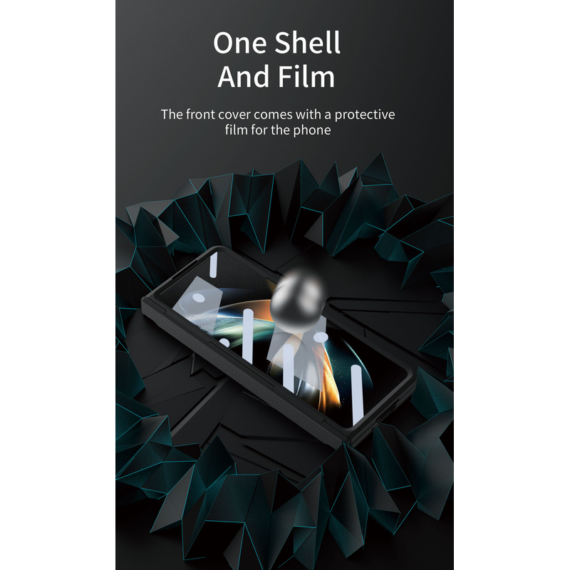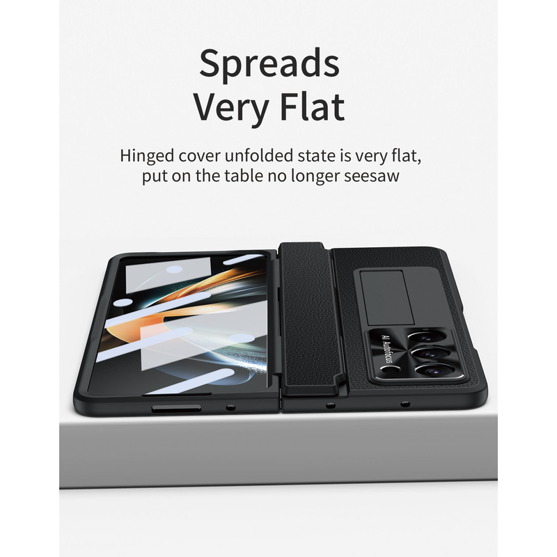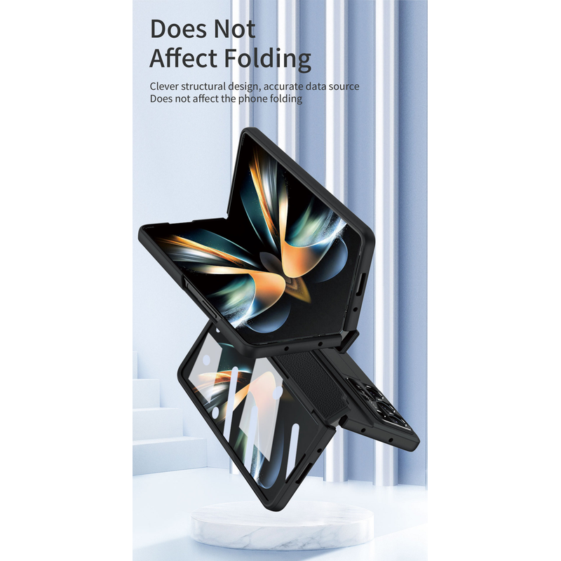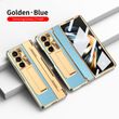 Foldable Screen Flat Hinge Plain Leather All-inclusive Drop-resistant Protective Shell Blue Shield Samsung FOLD5