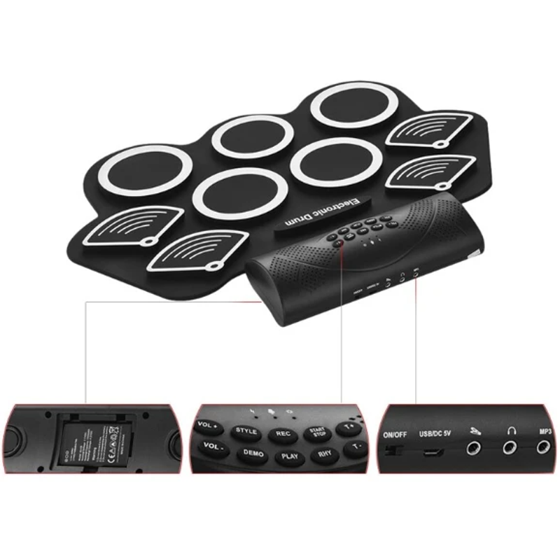 Foldable silicone hand roll electric drum Black EU