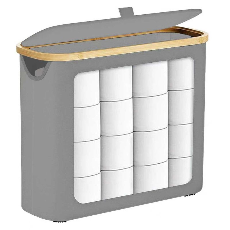Foldable Slim Visible Rolls Paper Storage Basket with Lid Toilet Paper Tissue Storage box Multipurpose Bathroom Organizer