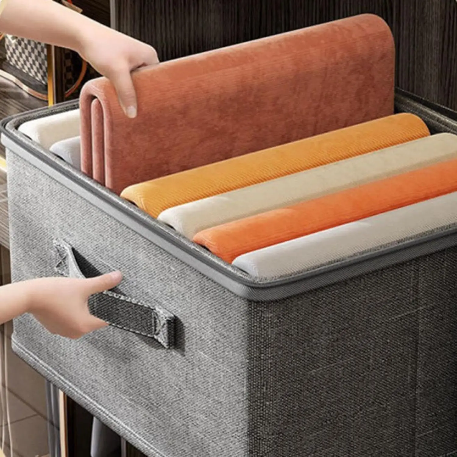 Foldable Storage Boxes with Lid Handle Clothing storage frames Fabric Storage Containers for Clothes Bins with Zipper Portable