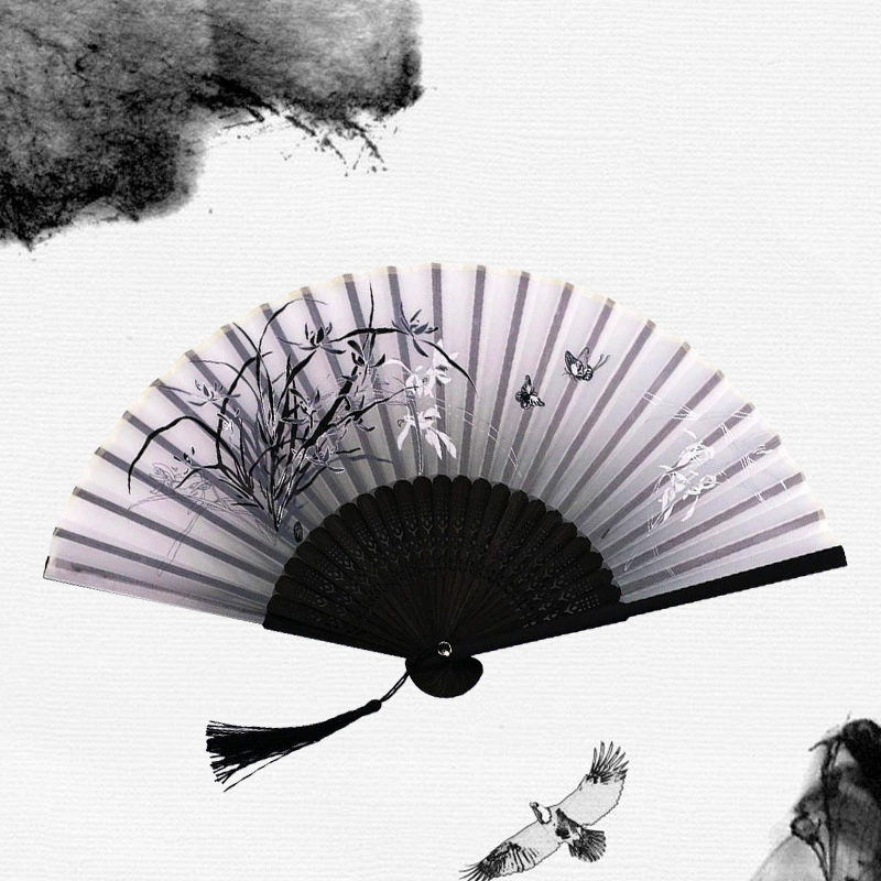 Folding Hand Fan Vintage Style Silk Bamboo Fan Chinese Hand Fans Women Dance Fan Cosplay Wedding Party Props Decoration Gift Fan