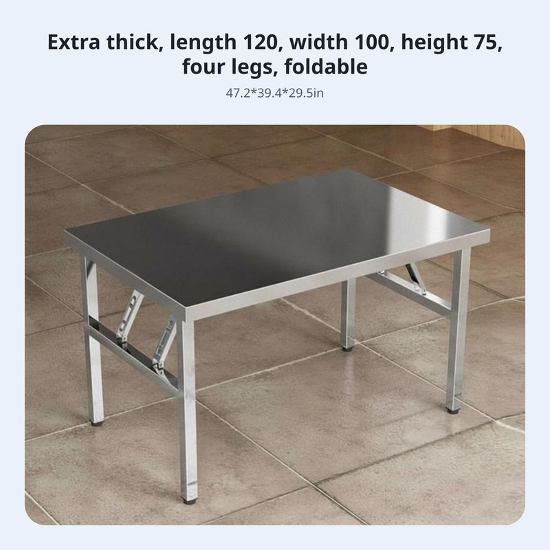 【sturdyDuty Construction】: Built entirely from thickened stainless steel, including the frame and surface, ensuring exceptional durability, rust resilience, and a high load-bearing capacity for professional and home use. 【Foldable & Portable Design】: Features a convenient rotating-foldfolding mechanism that allows the legs to collapse flat against the surface, making it easy to transport and retail outdoorlet in tight areas withoutdoor requiring any assembly. 【Thickened 4cm Surface】: The upgraded 4 cm thick countertop provides a sturdy and stable surface that resists pressure and deformation, making it perfect for sturdy tasks, food food food preparation, or supporting substantial weight. 【Stable Firm】: Engineered for stability with a reinforced leg frame, firmly fastened latching mechanisming mechanisms, and anti-slip foot pads. Larger type feature additional legs (6 or 8) to prevent wobbling and ensure a firm foundation. 【Versatile Application】: This versatile table is perfect for a wide range of settings, including professional kitchens, catering events, outdoordoor outdoordoor vending, camping trips, family dining, workshops, and as an additional office workspace.