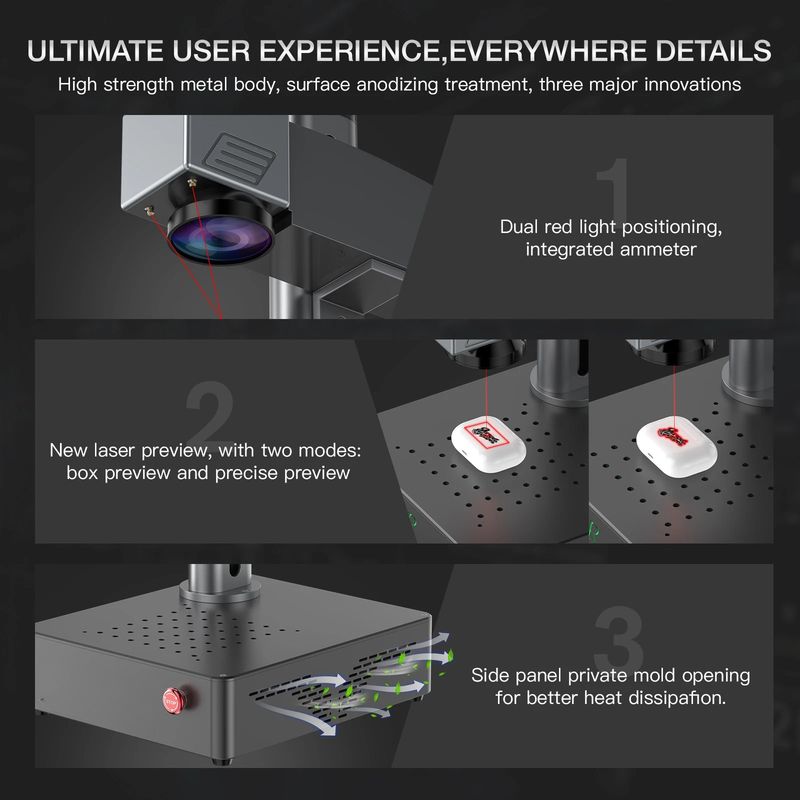 Engraving area: 150*150mm by default(If you need to replace it with a 70 * 70mm/110 * 110mm/200 * 200mm lens, you can contact customer service to make the change before shipping)