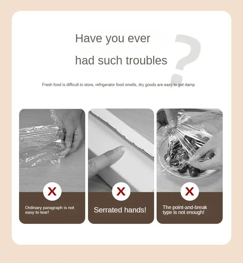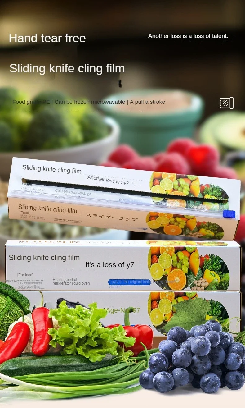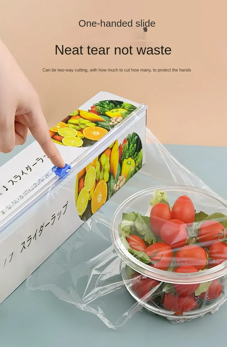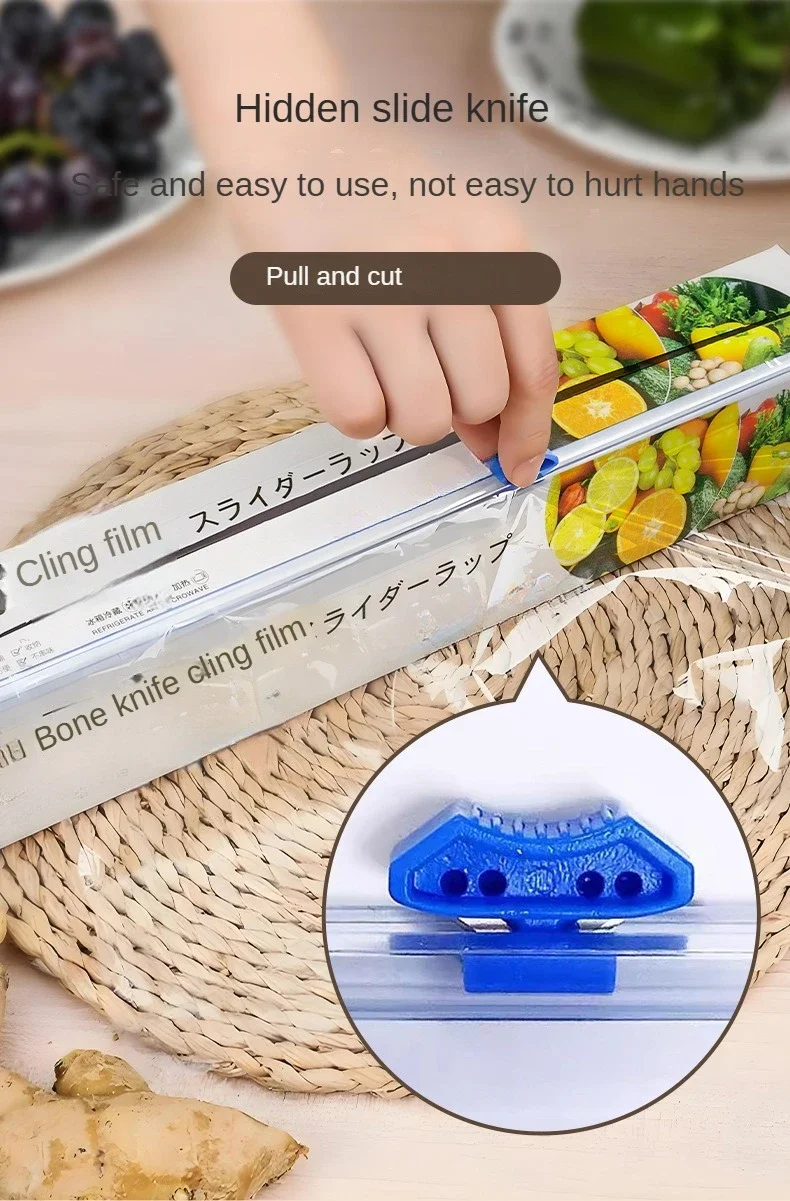 白佳滑刀式保鲜膜食品级滑刀式便捷切割大卷厨房家用切割盒经济装