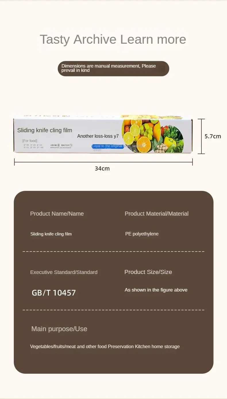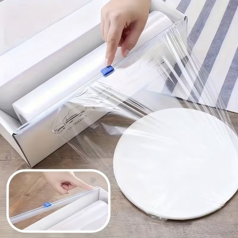 Food Grade Plastic Wrap Large Roll with Slider Cutter Box for Kitchen Household Storage Cooking and Efficient Food Preservation