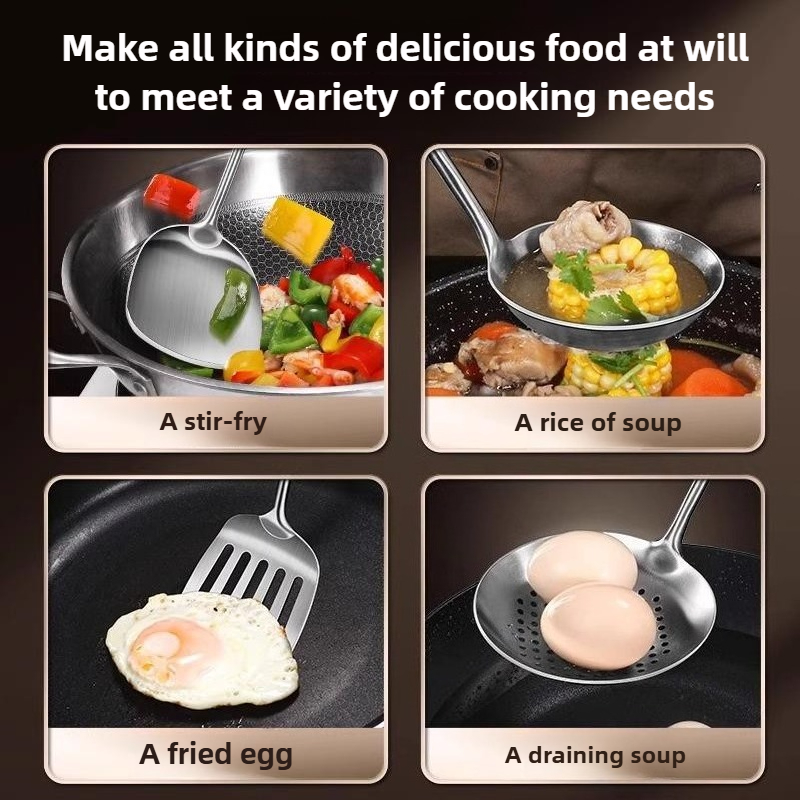 Food Stainless Steel Wok Spatula Metal Kitchen Utensils Slotted Turner Spoon Ladle Utensil Set Kitchen Accessories Cooking Tools