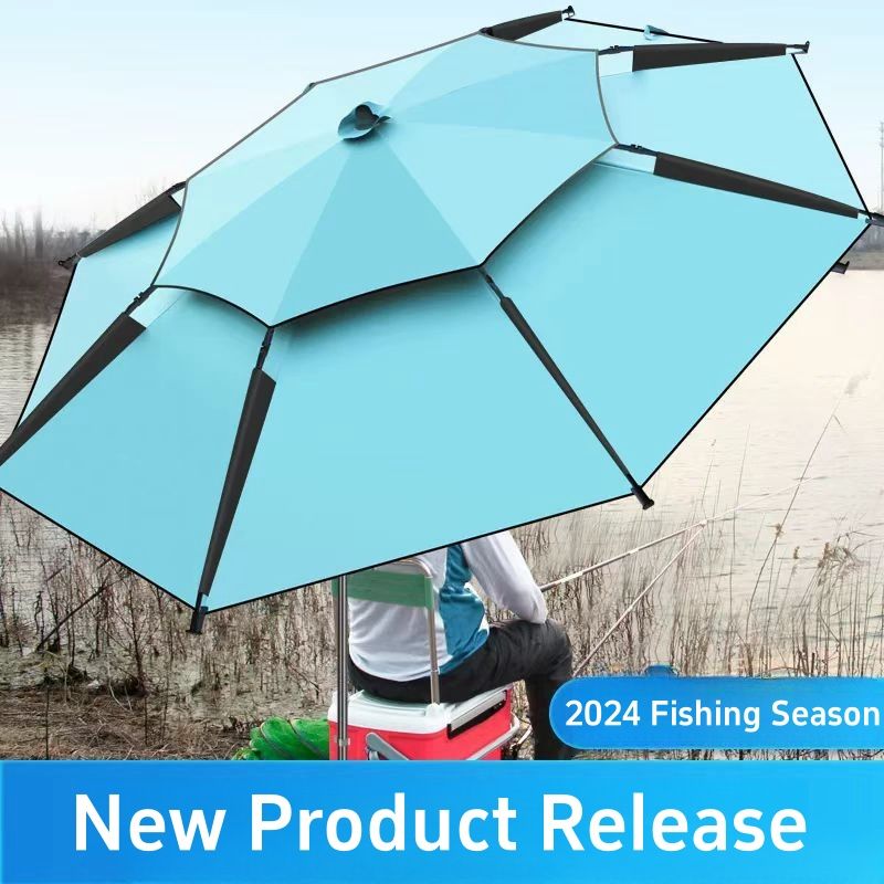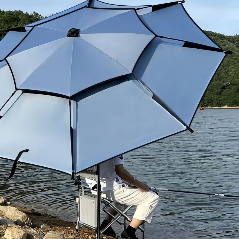 For 1-2 Person Fishing Umbrella Double Vinyl Coating Sunshade Windproof Waterproof Outdoor Stand Umbrella With Ground Insert