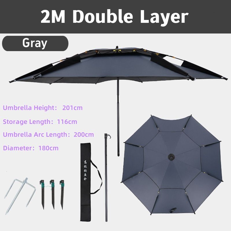For 1-2 Person Fishing Umbrella Double Vinyl Coating Sunshade Windproof Waterproof Outdoor Stand Umbrella With Ground Insert