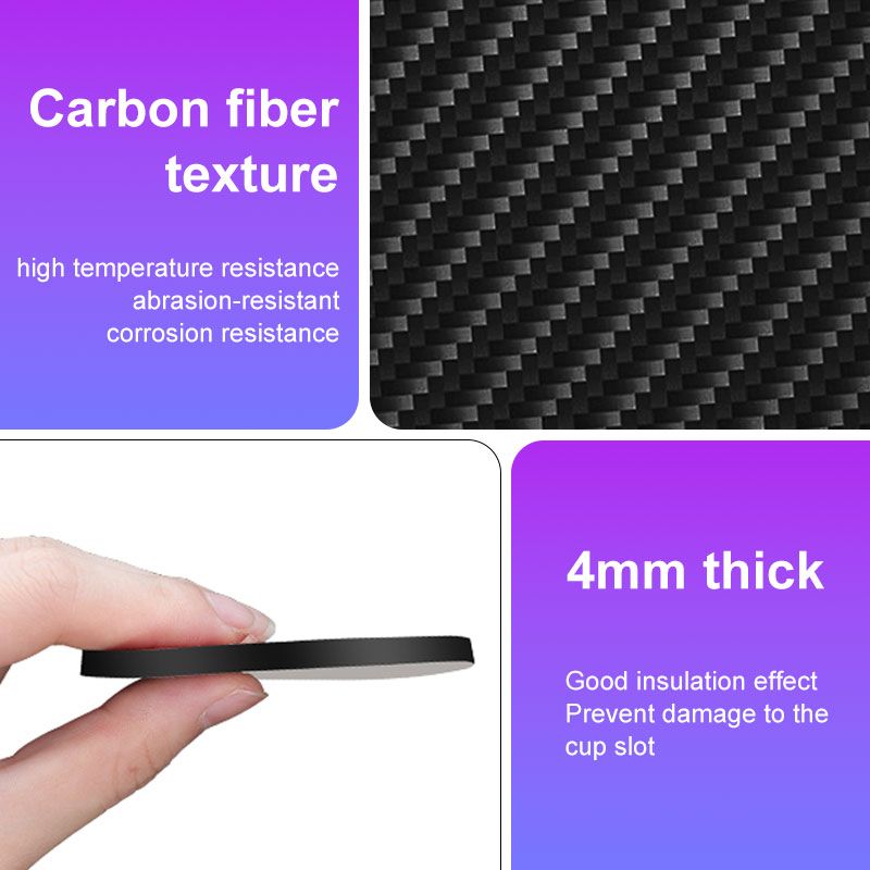 *Universal Car Coaster Water Cup Mat Carbon Fiber Pattern Cup Holder Mat Non-slip Pad Accessories