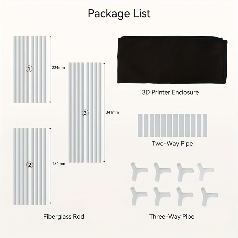 Safe to Use & Stable Structure: The interior uses pure aluminum film and flame retardant appearance material. Technically, if in a fire, it will melt and not fire itself of the enclosure and will not spread as well. What's more, this 3d printer enclosure equipped with a selection of iron pipes, stable structure and abundant space.