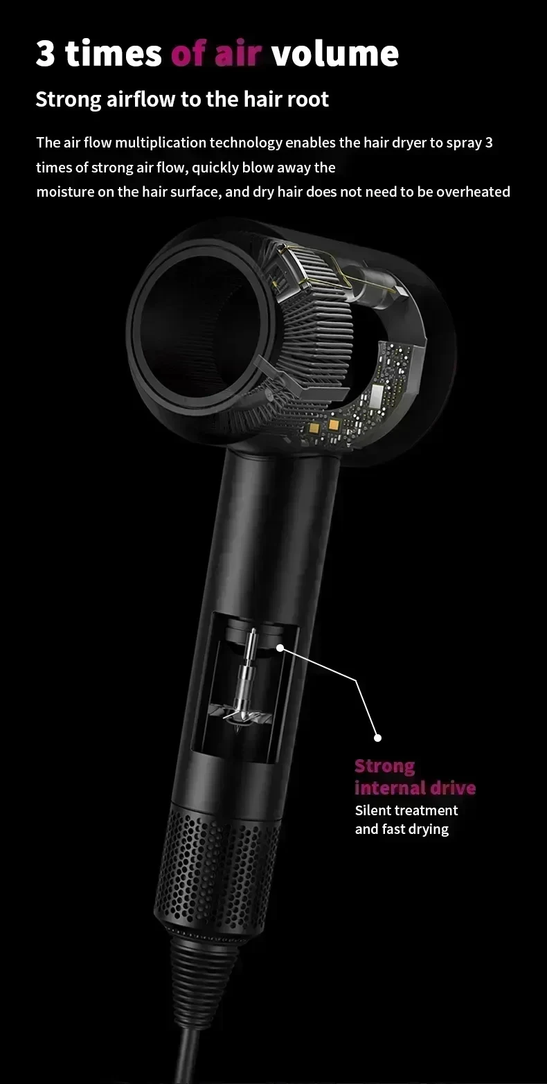For EU Professional Leafless Hair Dryer, High-Speed Negative Ion 110,000 Rpm, Professional Hair Care, 62M/S Wind, 1600W, Quick