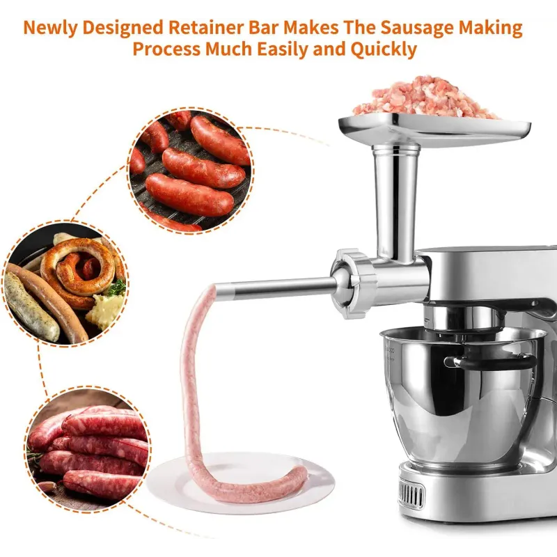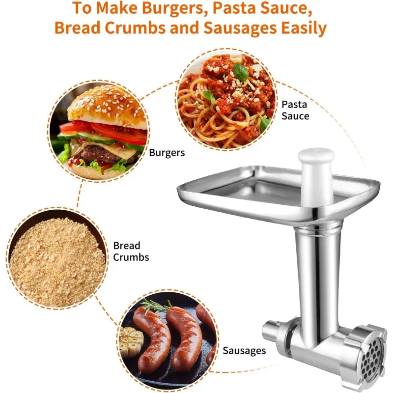As a professional meat/food grinder, accessories can easily handle various tasks such as grinding meat, fruits, vegetables, hard cheese, making breadcrumbs, etc. With two sizes of sausage filling tubes, you can make any sausage and dish you like