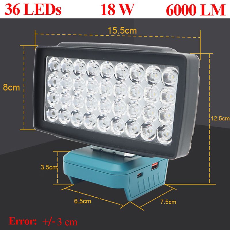 For Makita 18V Li-ion Battery Case Bl1830 Lithium Cell Pack Type C USB Power Bank LED Work Lamp Light Flashlight Torch Charger