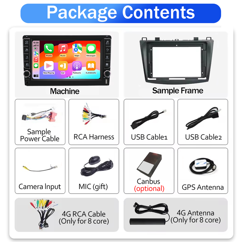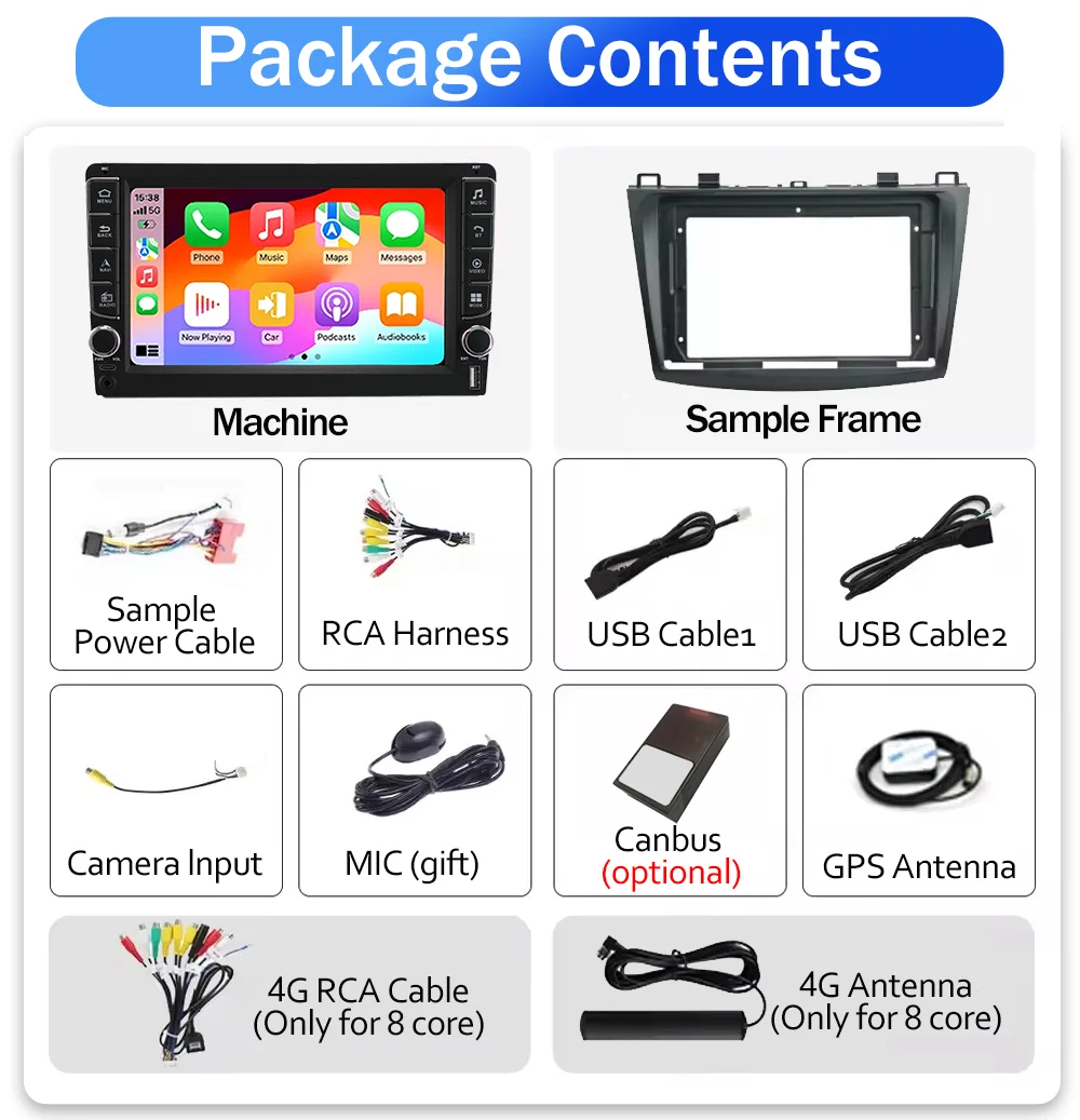 Include Accessories: USB*2, RCA, GPS, Camera Input Cable, 4G Cable (Only 4G Model)