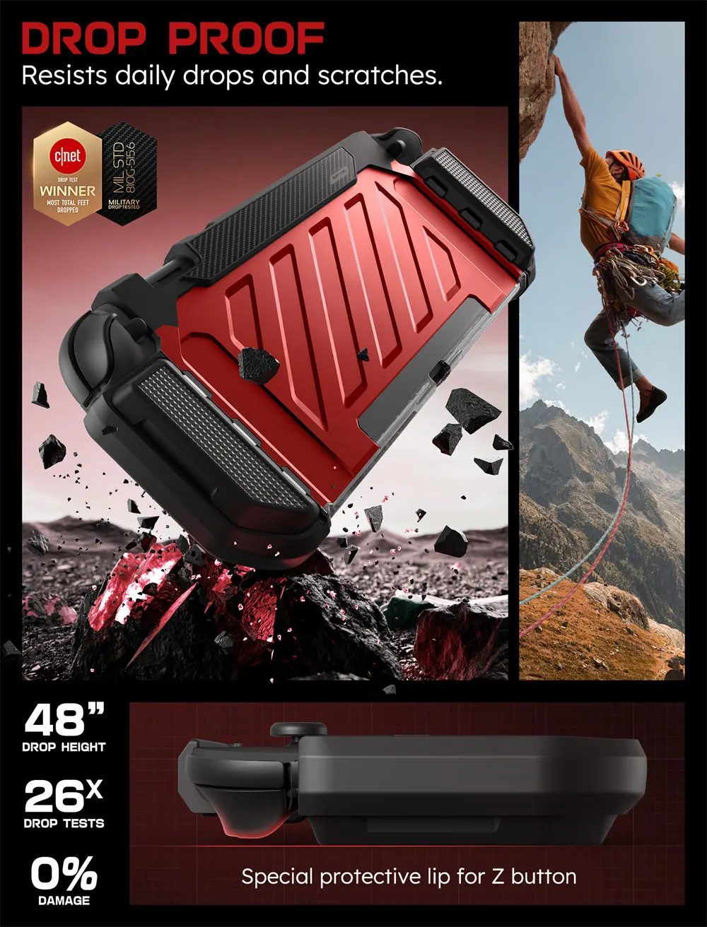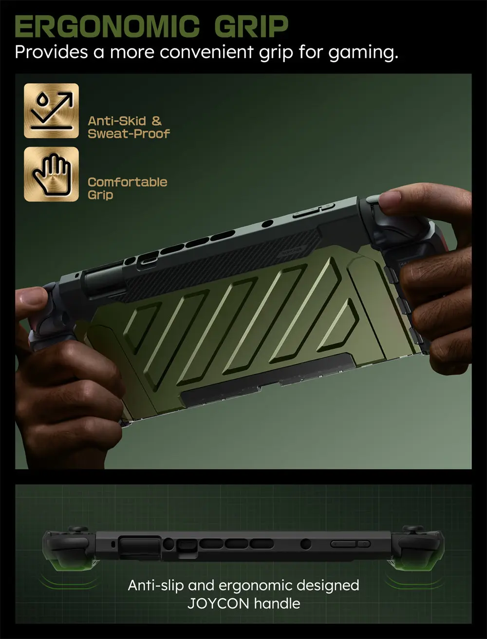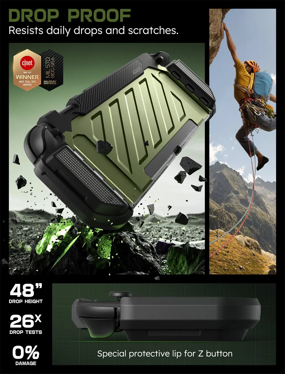 [Military-Grade Protection]: Engineered to U.S. military-grade standards (MIL-STD-810G 516.6), this shockproof case delivers 360° defense against drops, impacts, and scratches. 2.5mm raised bezel guards the console's screen to withstand daily adventures.