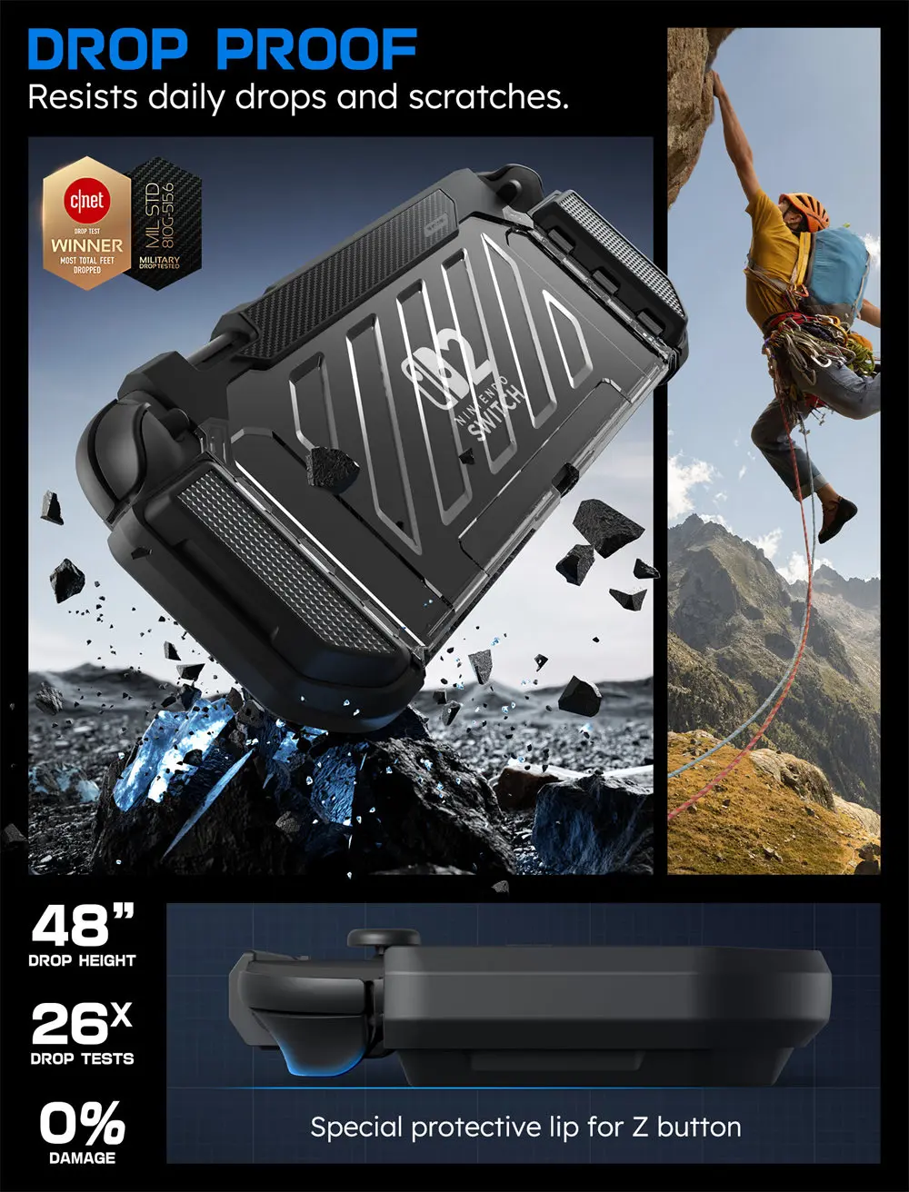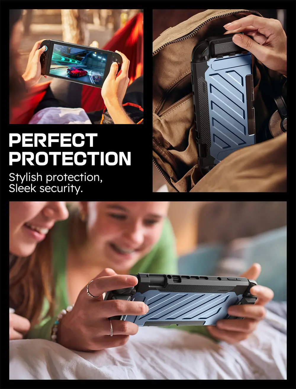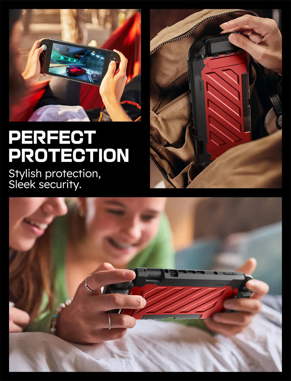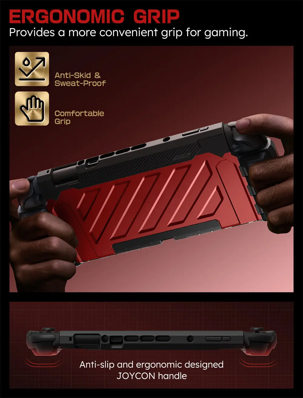 [Military-Grade Protection]: Engineered to U.S. military-grade standards (MIL-STD-810G 516.6), this shockproof case delivers 360° defense against drops, impacts, and scratches. 2.5mm raised bezel guards the console's screen to withstand daily adventures.
