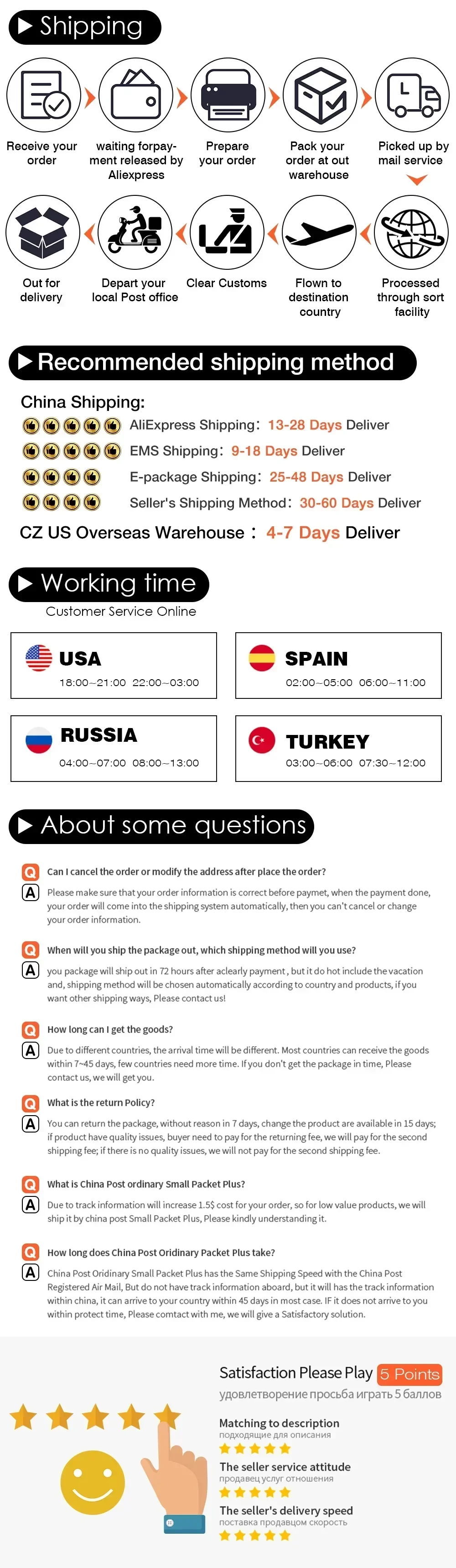 Please note that delivery times are estimates and may vary due to customs procedures, carrier delays, weather conditions, or other unforeseen circumstances.