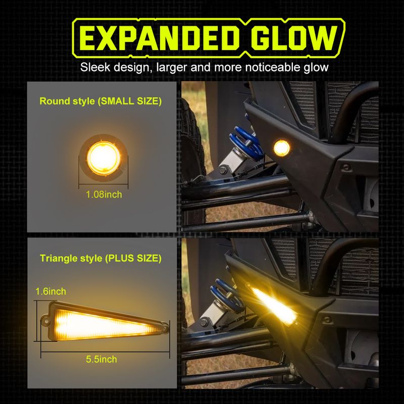 High-Visibility Amber Lights: The UTV turn signals feature scientifically optimized amber lighting with superior penetration. Clearly visible in heavy rain and dense fog, they provide long-range warning to surrounding traffic for enhanced safety
