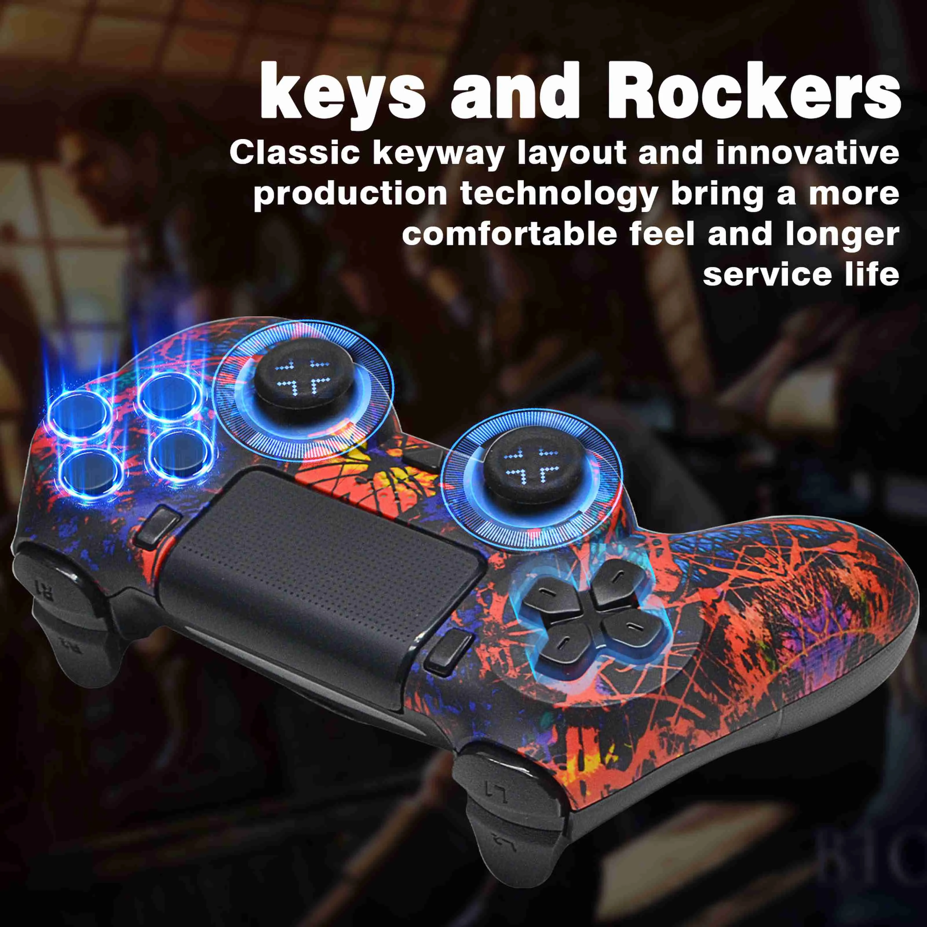For PS4 game controller, compatible/P4 Pro/P4 Slim/PC gamepad, support 6-axis/vibration/touchpad with 2-point touch click, red w