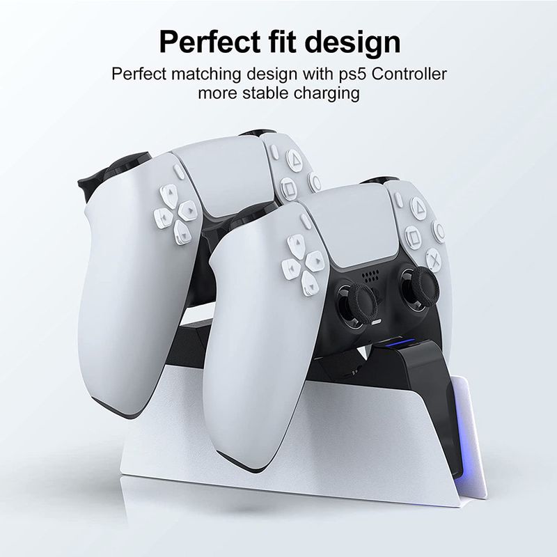 • 【OVERCHARGE PROTECTION】Drop the ps5 controllers on charging dock and forget them, this ps5 charger station with the smart chip on board will prevents ps5 controllers from overcharging. The feature of anti-overcharge will slowly stop charging controllers after reaching a full charge. There is no worry of overcharging issue happen on your ps5 controllers