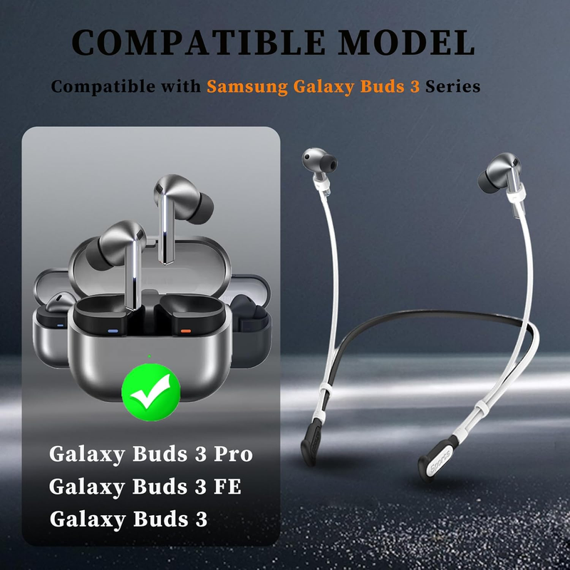 [Compatibility] Our anti-lost neckband strap only compatible with Samsung Galaxy Buds3 FE (2025) / Buds3 Pro (2024) / Buds 3 Case (2024), which is a prefect anti-lost accessories for Galaxy Buds. Note:Earbuds not included.