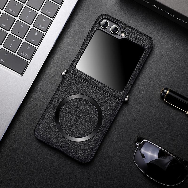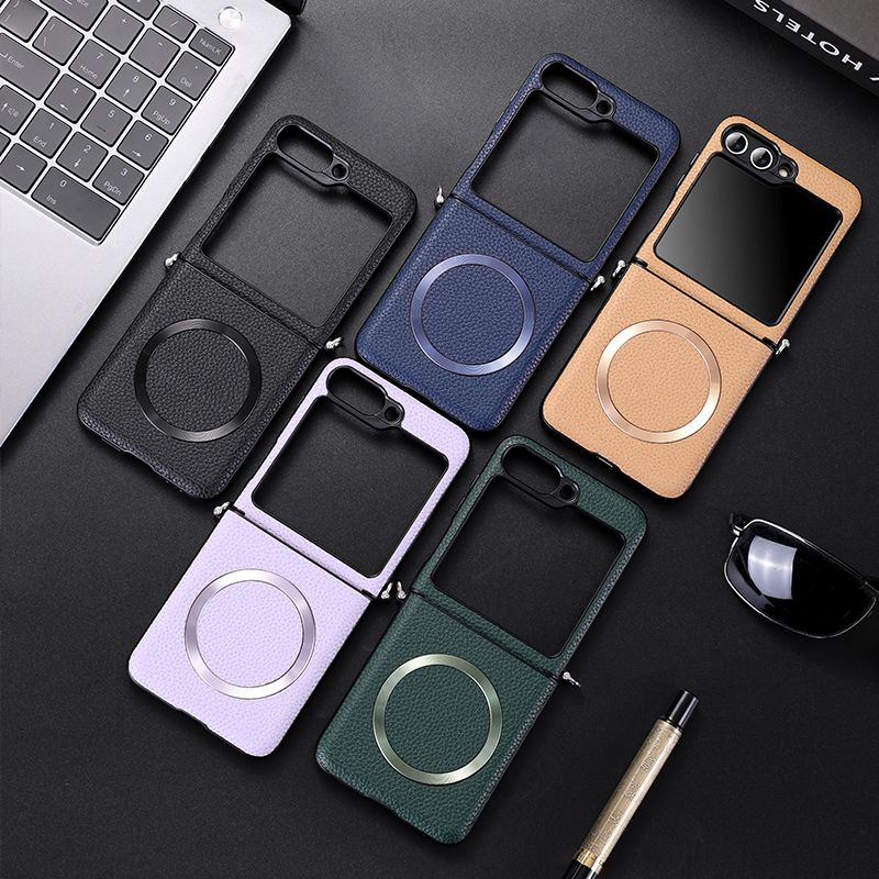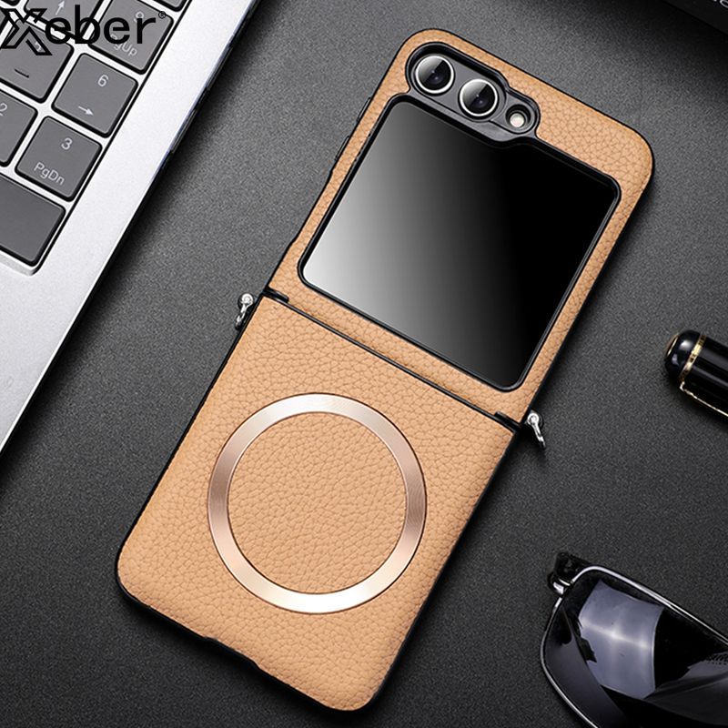 For Samsung Z Flip 5 6 For Magsafe Wireless Charge Case For Galaxy ZFlip 6 Flip 4 5 ZFlip4 Zflip5 Magnetic Litchi Leather Cover