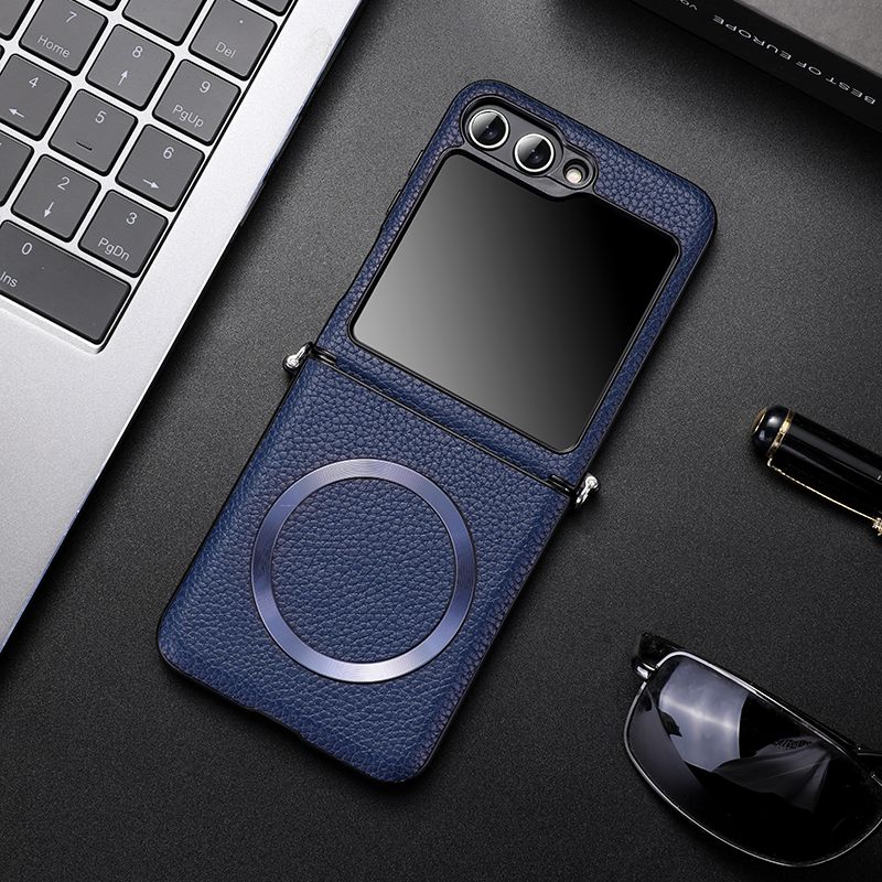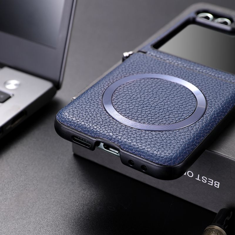For Samsung Z Flip 5 6 For Magsafe Wireless Charge Case For Galaxy ZFlip 6 Flip 4 5 ZFlip4 Zflip5 Magnetic Litchi Leather Cover