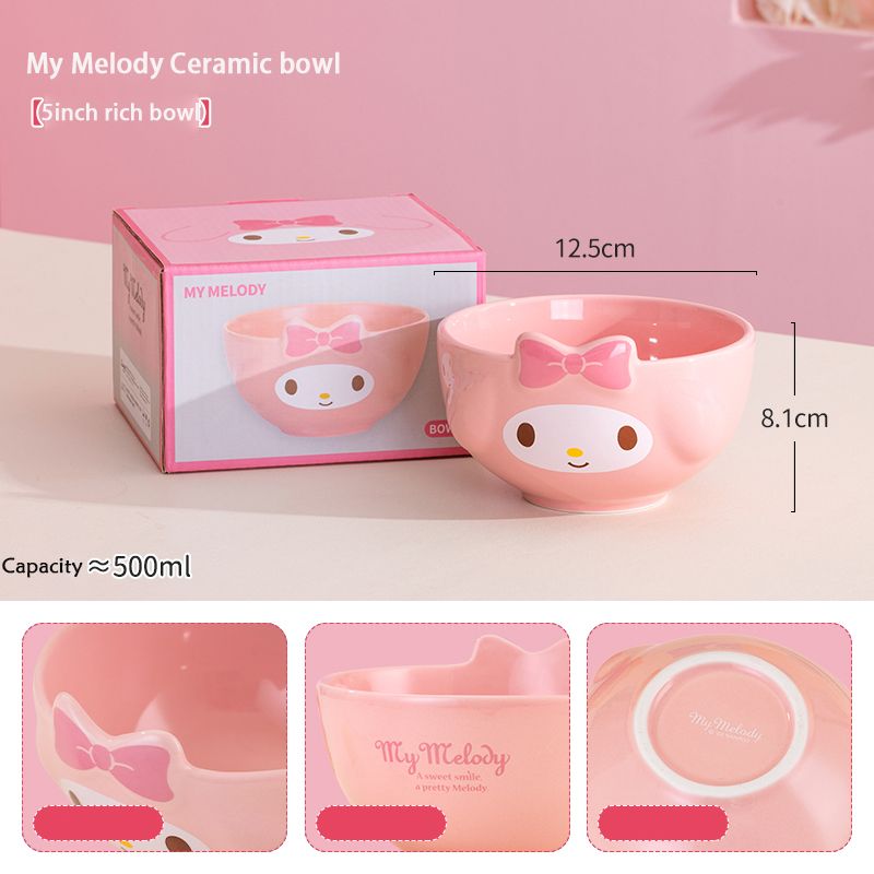 For Sanrio 5Inches Ceramic Rice Bowls Home Cute for Melody& Cinnamoroll& Kuromi Tableware Cartoon Anime Relief Bowl for Children