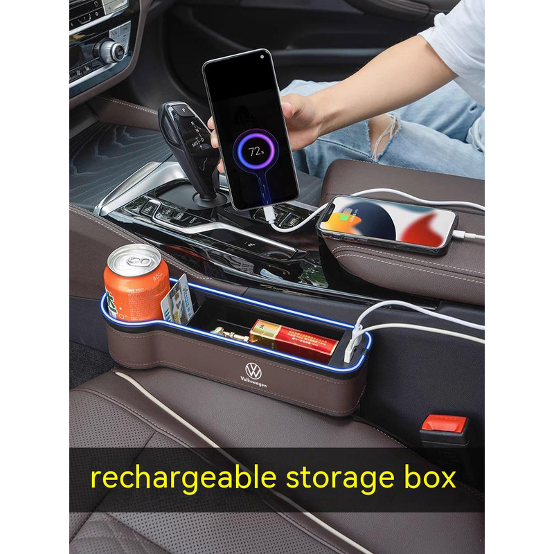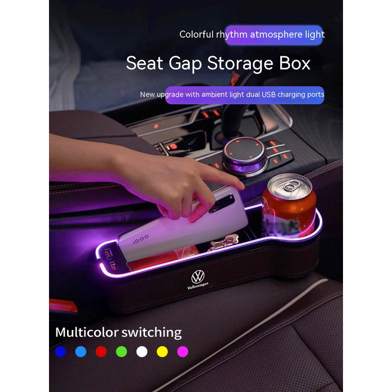 For Volkswagen GTI Golf Passat Touareg Magotan Tiguan ID.4 T-ROC T-Cross Car Charging Colour Lamp Seat Storage Case Seat Gap Box
