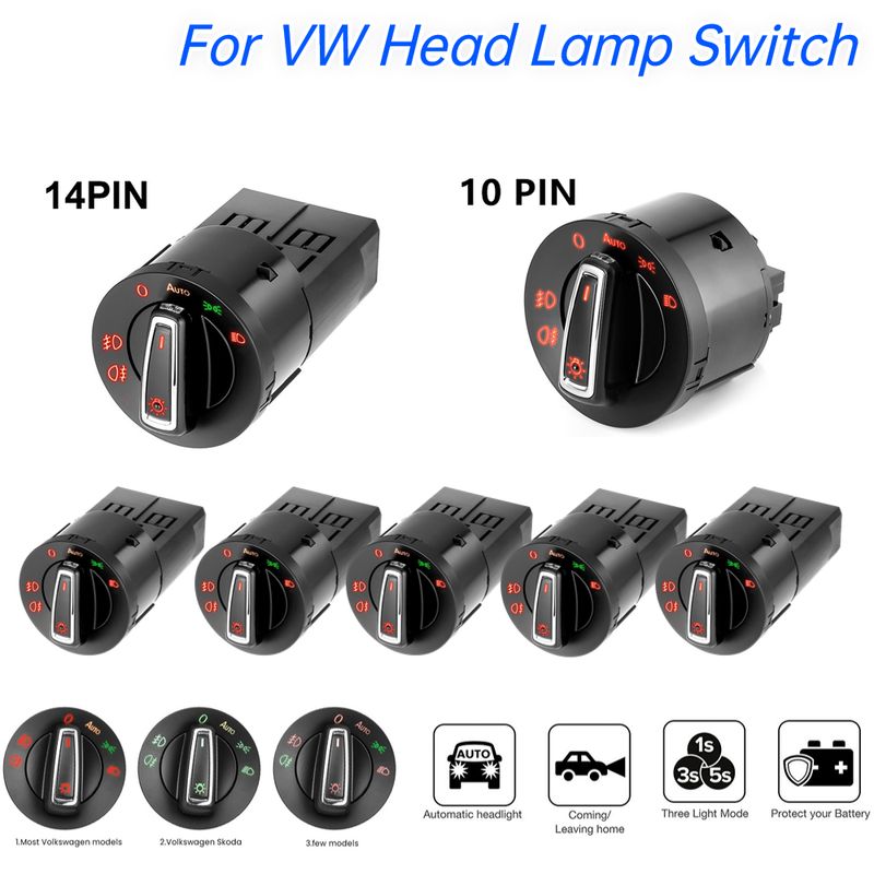 For VW Auto Headlight Head Lamp Switch Light Sensor Module 14Pin/10Pin For Golf Jetta MK5 6 Tiguan Touran Passat Polo Bora