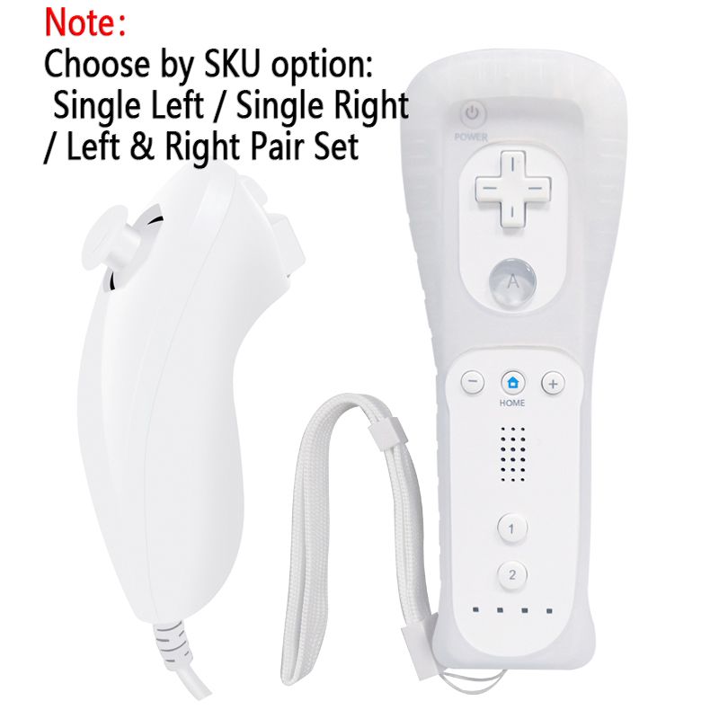 For Wii/Wii U Wireless Controller Set – Left Nunchuk Joystick + Right Vibration Remote with Silicone Cover & Wrist Strap