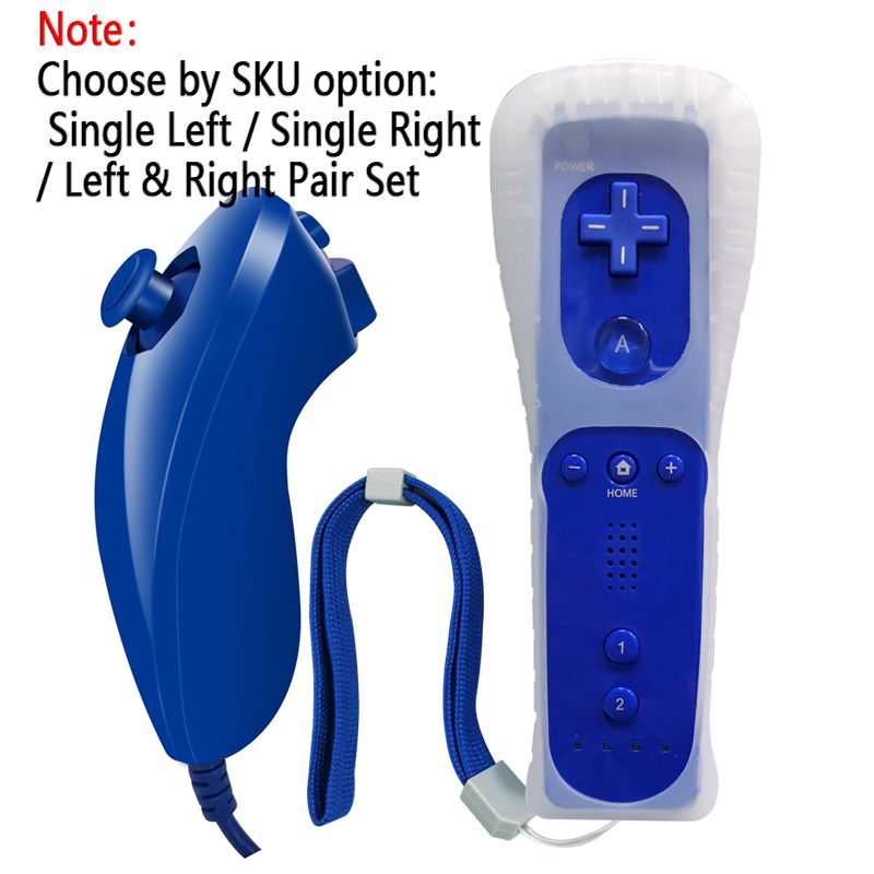 For Wii/Wii U Controller Set – Left Nunchuk Joystick + Wireless Right Remote with Silicone Cover & Wrist Strap