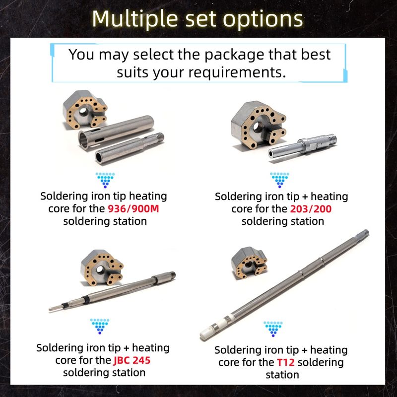 📌We offer heating elements compatible with Four soldering station models: (936/900M)/(203/200)/JBC245/T12. Please purchase the corresponding heating element based on your existing soldering station model.