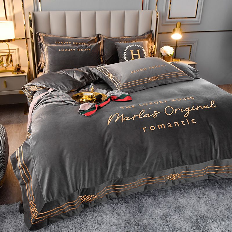Four-Piece Milk Velvet Set On Light Luxury Bed Dark Green 2.0m4pcs