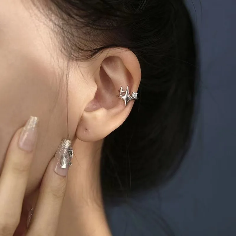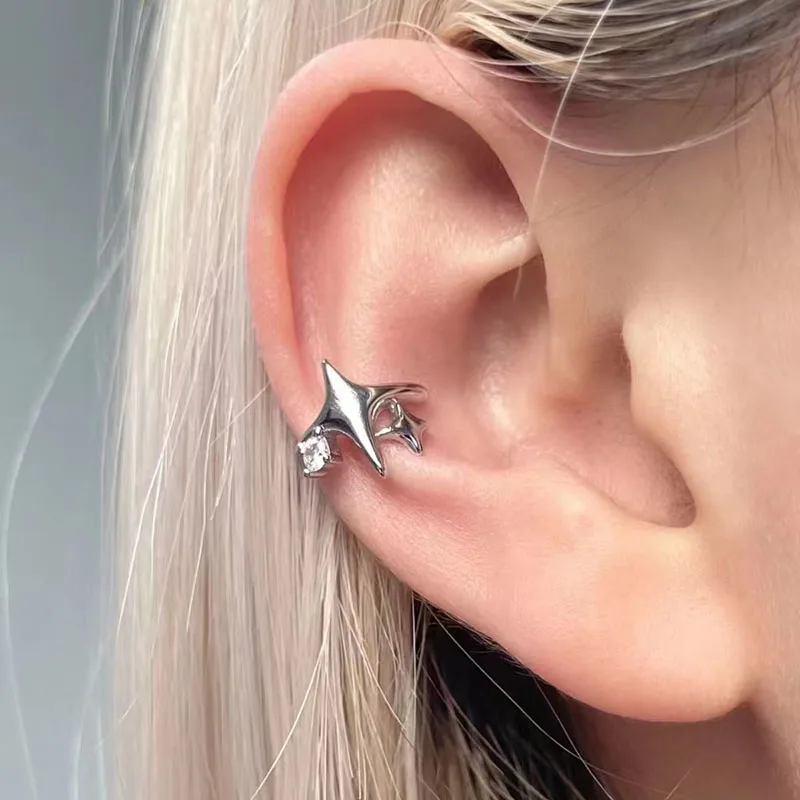 Four Pointed Star Clip Zircon Earrings Suitable Women Without Ear Holes Jewelry Ear Bones Clip Men Luxury Trendy Ear Accessories