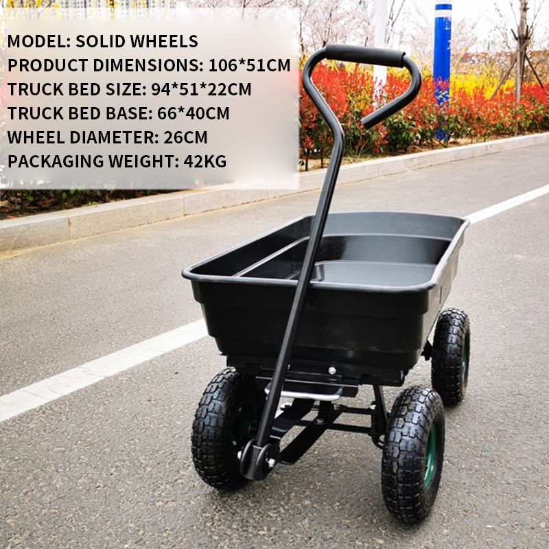 Four-Wheel Hand Cart Trailer Dump Truck Folding Hand Truck Agricultural Hand Truck Material Handling Cart Household Use