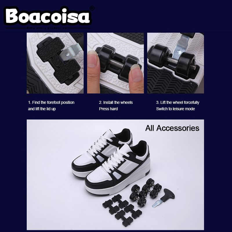 Four wheel roller shoes Boys girls walking shoes Casual outdoor sports slide and shrink school students pulleys shoes sneakers