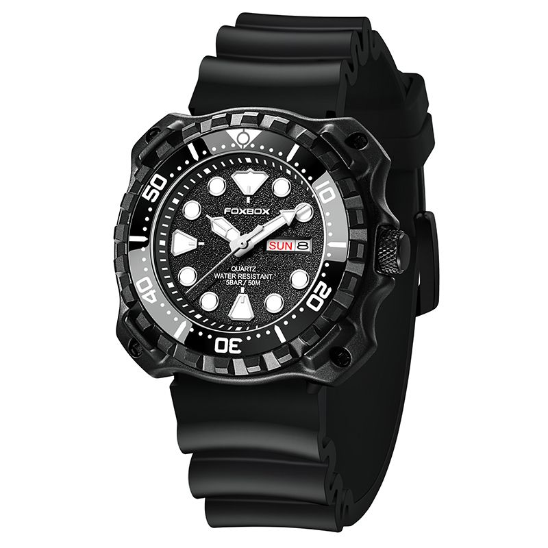 FOXBOX Fashion Gold Watches For Men Brand Luxury 30M Waterproof Men's Quartz Wristwatch Military Silicone Sports Diver Watch Men