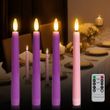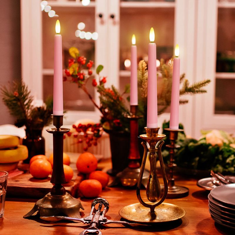 FPOO 4pcs LED Taper Candles Pink Flameless Wedding Candle Timer Remote Battery-operated Table Home Decoration Electronic Candle