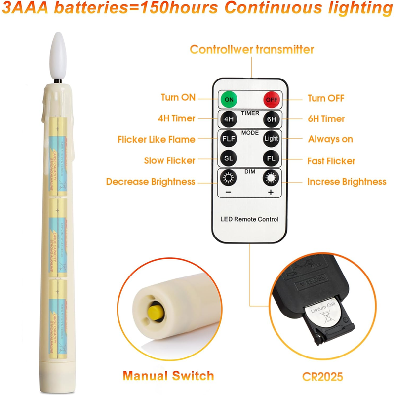 ✔✔ Each candle require 3*AAA battery to operated(don't include in the candles), candle size: diamete is 2 cm,height is 21 cm.