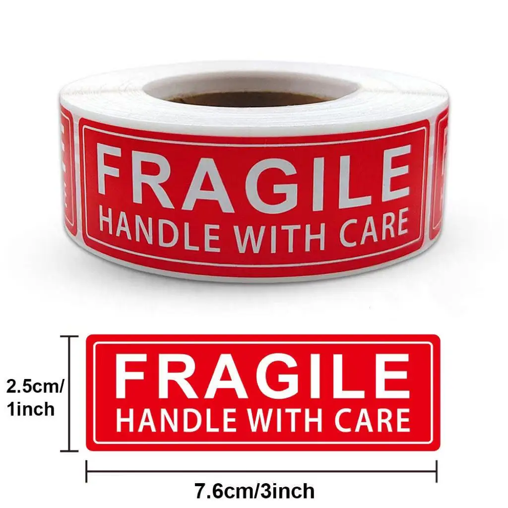 Fragile warning label affixed with English copper self-adhesive sticker tips for removing fragile items