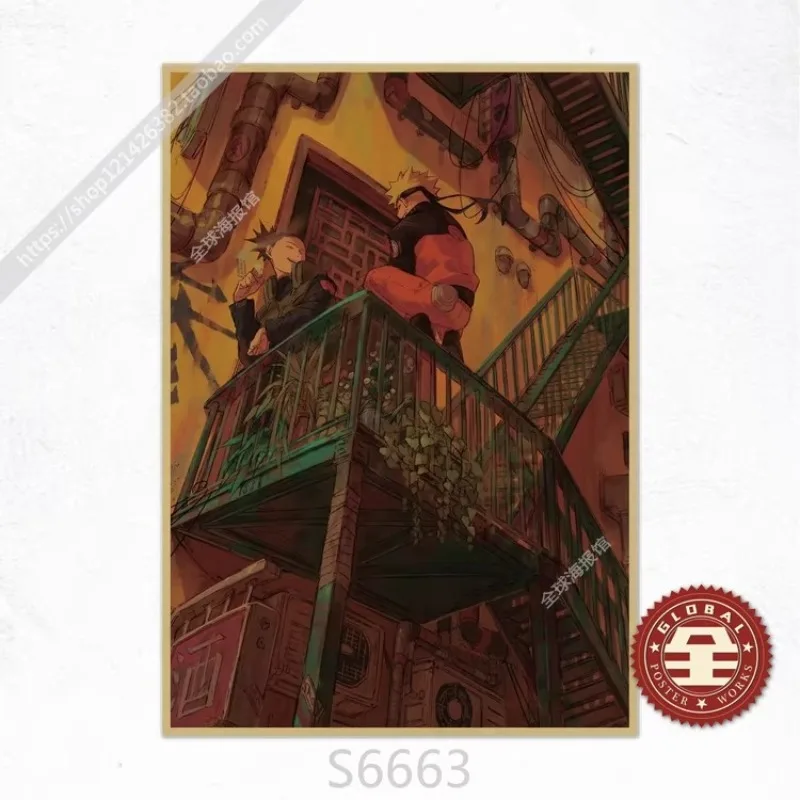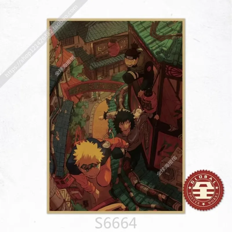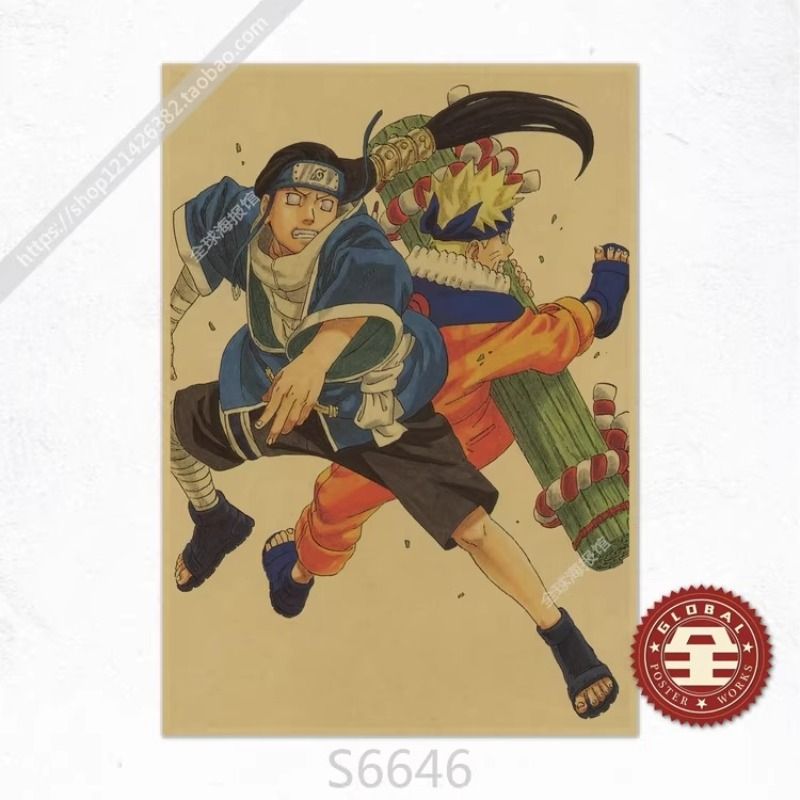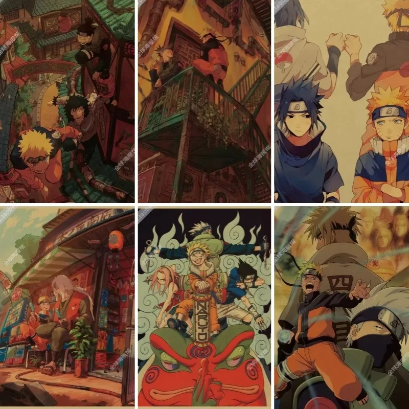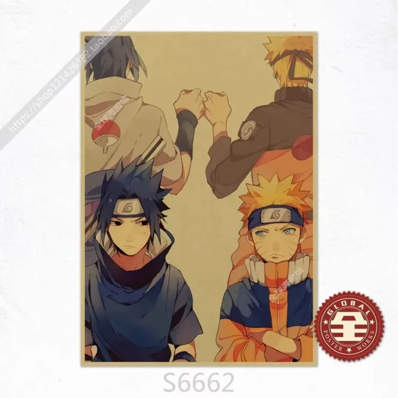 Frameless Naruto Uzumaki Naruto Sasuke Retro Kraft Paper Poster Bedroom Living Room Decoration Painting Hanging Painting